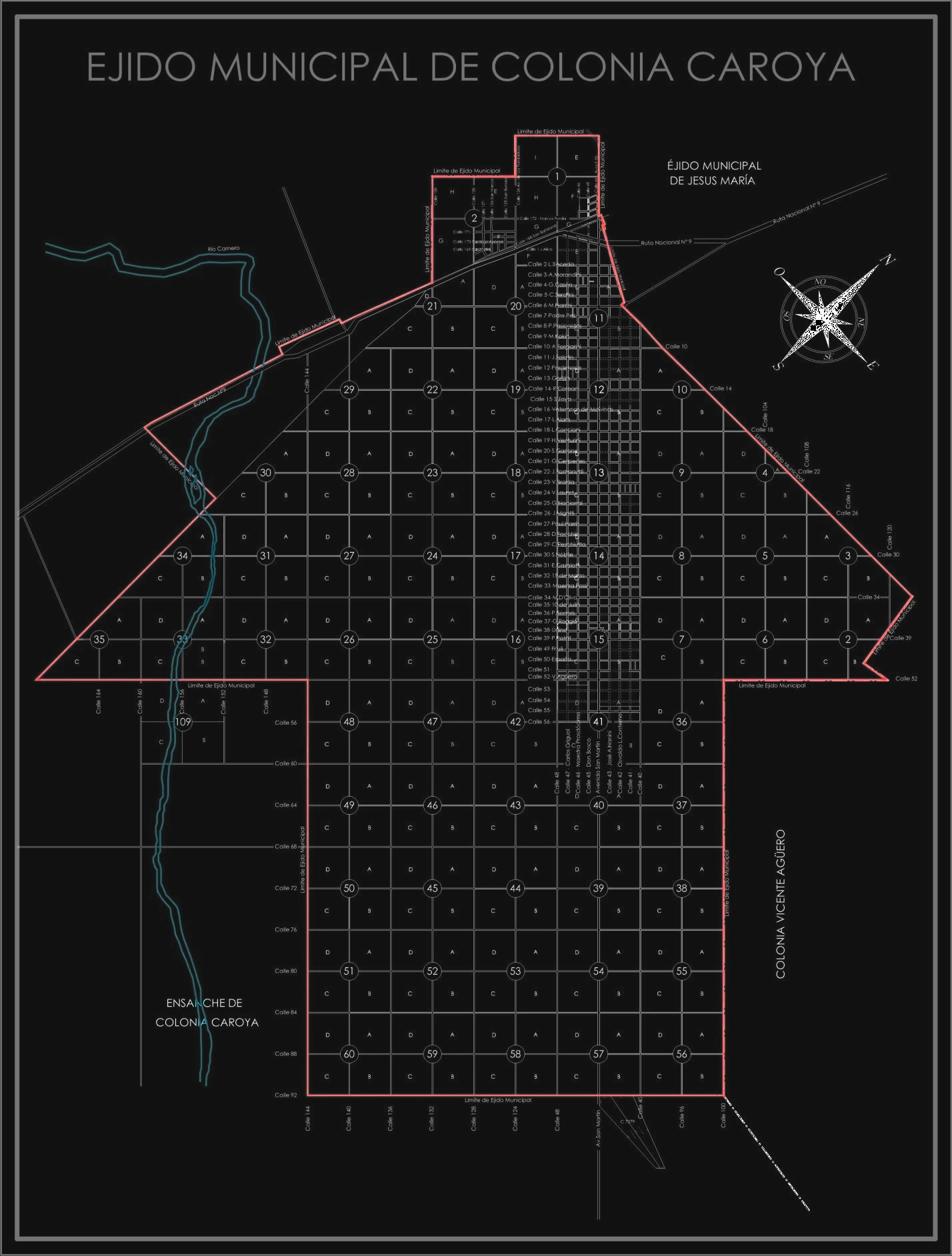 Gráficos y Planos AnexosAnexo 1Anexos Gráficos y Planos Anexos ANEXO 1 PLANO Nº 1: Identificación gráfica del Ejido Municipal de Colonia Caroya TÍTULO I – Capítulo 1 – Art. 3º Last updated on January 7, 2026VI - Disp. TransitoriasAnexo 2