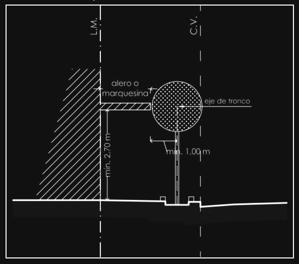 GRÁFICO Nº 13: FACHADAS: Saliente de Aleros y Marquesinas en calles arboladas.-